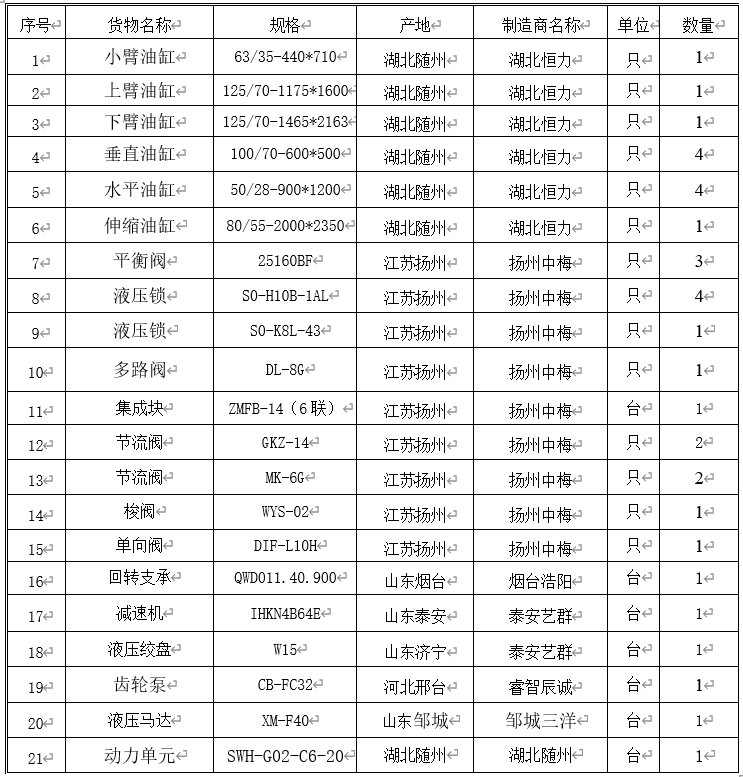 油缸 | 12只;带双向平衡阀或液压锁进行锁止,保证安全 | |||||||