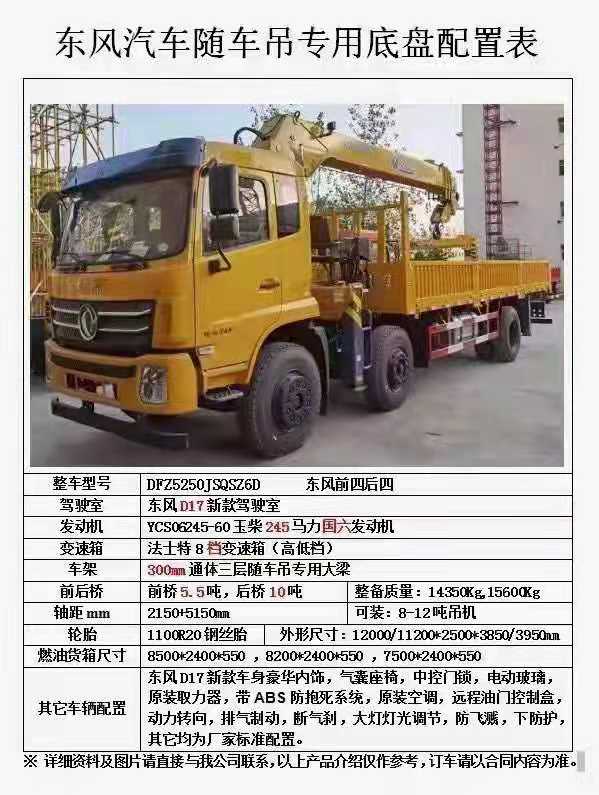 随车吊全称随车起重运输车,又名自备吊、自卸吊、自带吊。是一种通过液压举升及伸缩系统来实现货物的升降、回转、吊运的设备,通常装配于载货汽车上。它广泛适用于市政建设、煤矿工程、园林绿化等基建材料与其它设备的吊装及运输。随车吊可左右操作,可正反360度旋转,也可全方位旋转。还可做成多功能如平板带吊可以拉挖机、清障带吊还可以拉小车等等,功能简直数不胜数。